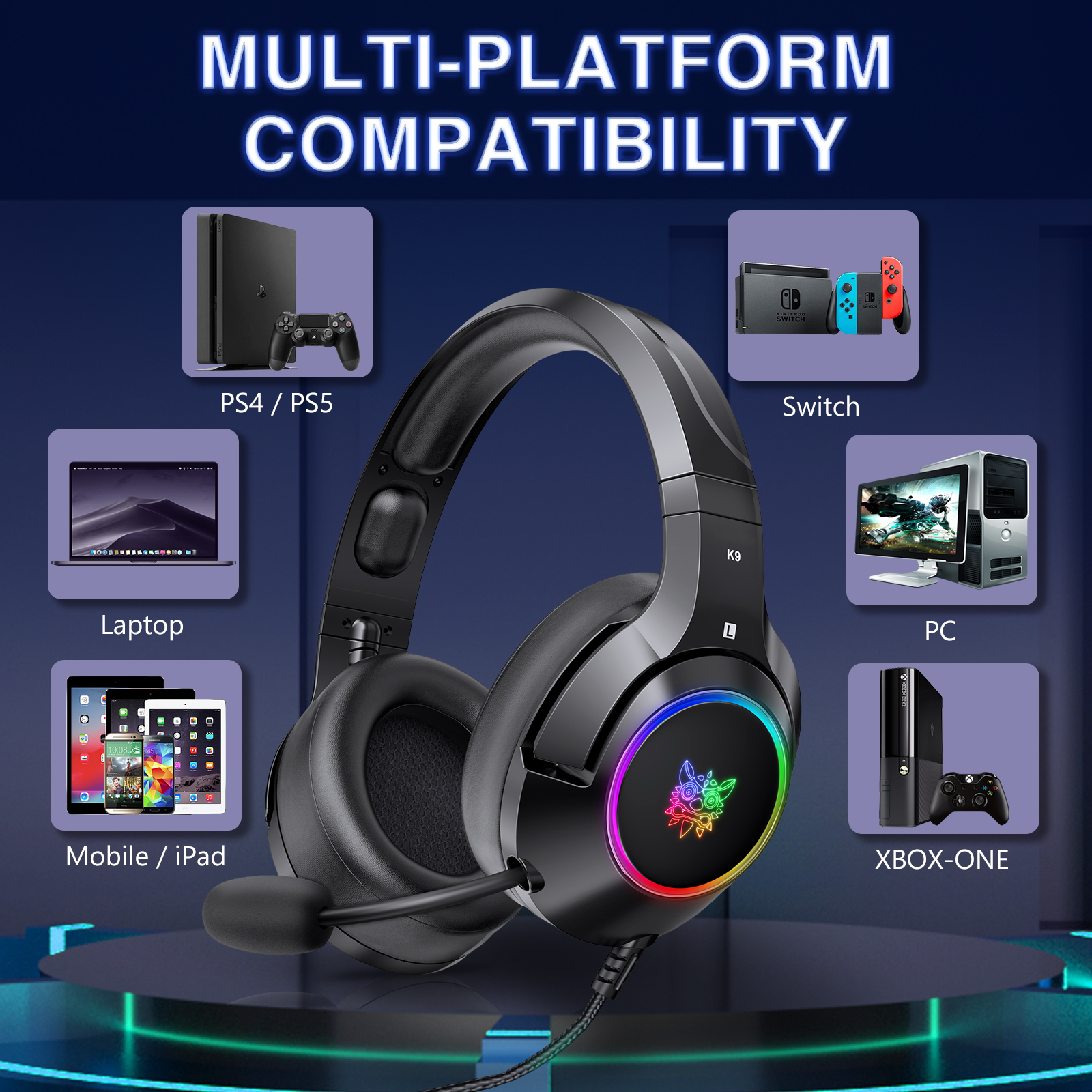 Designed for comfort and durability, the K9 features cushioned ear pads and a sturdy build, with an extra-long 2.2-meter cable allowing flexibility and freedom of movement during gameplay.