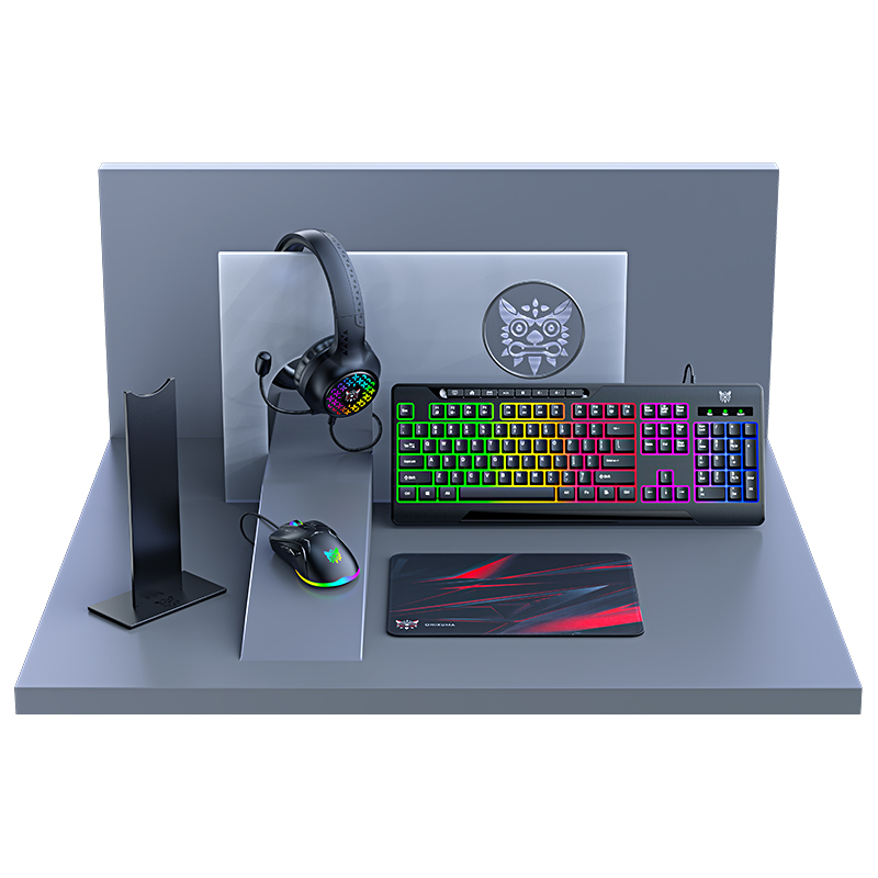 The Onikuma TZ5006 5-in-1 Gaming Combo delivers a complete, color-coordinated solution for serious gamers and home-office setups. Included is the backlit G32 full-size RGB keyboard with 104/114 responsive keys, offering vivid illumination and a comfortable typing experience for work or play.