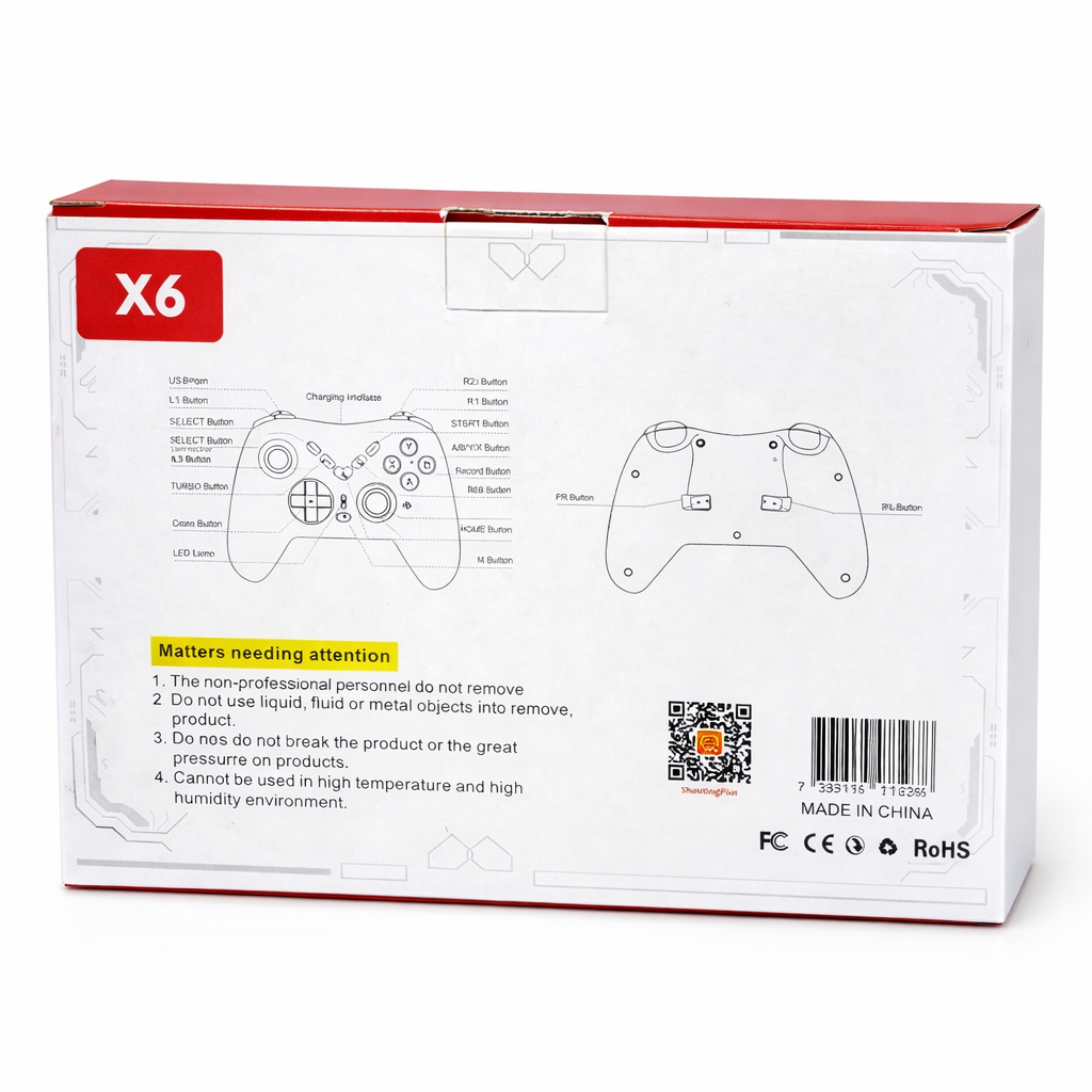 Compatible with Nintendo Switch, PlayStation 4, PlayStation 3, PC, iOS, and Android devices, the X6 Wireless Controller is an ideal all-in-one solution for gamers seeking versatility, comfort, and reliable performance.